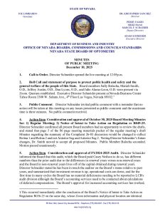 December 10, 2025 Optometry Board Meeting at 12:00 p.m. via Zoom and in-person