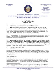October 30, 2025 Optometry Board Meeting at 12:00 p.m. via Zoom and in-person