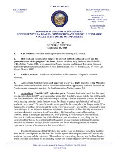 September 25, 2025 Optometry Board Meeting at 12:00 p.m. via Zoom
